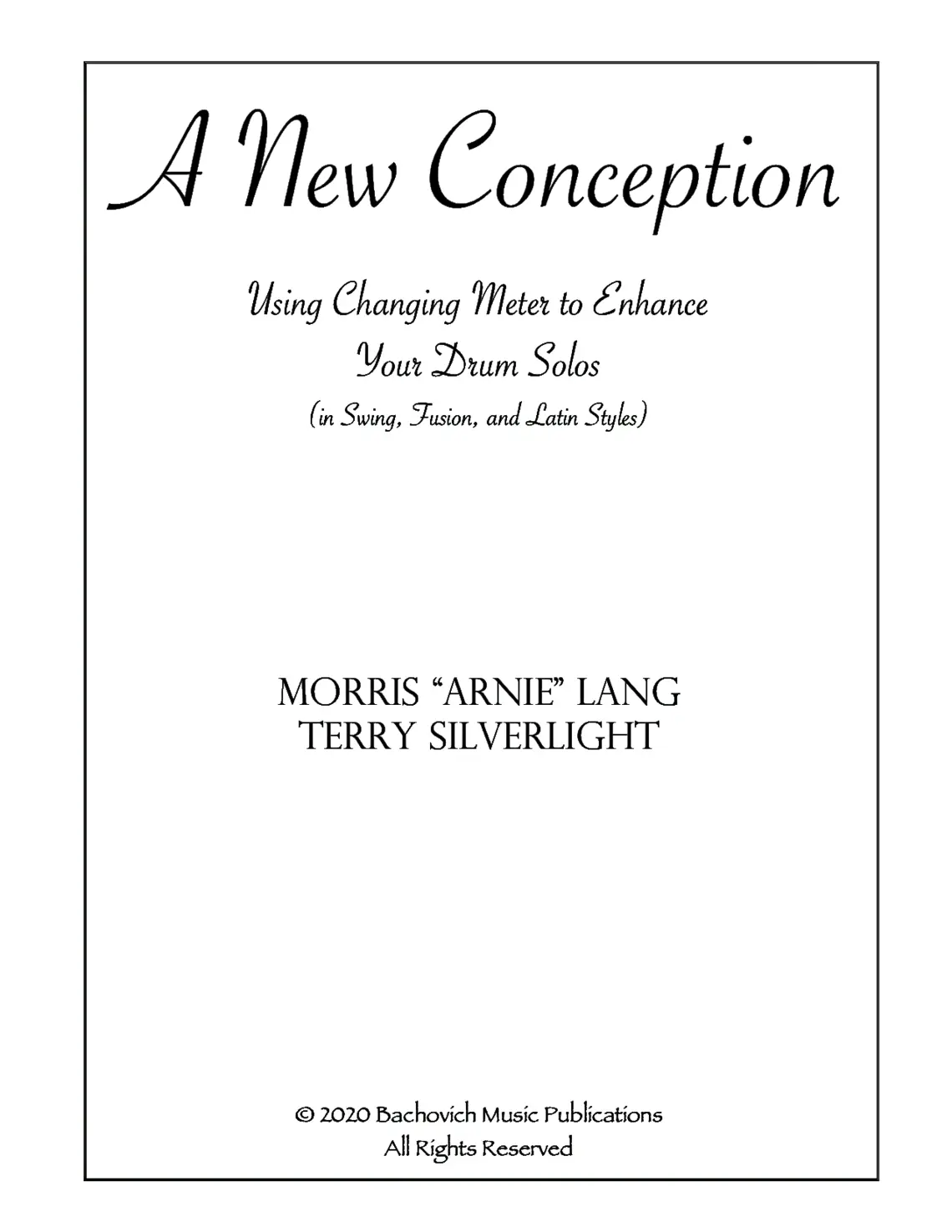 A New Conception (Bachovich Music Publications) instructs drummers in techniques to improve their drum solos through changing meter, in jazz, fusion, and Latin styles.