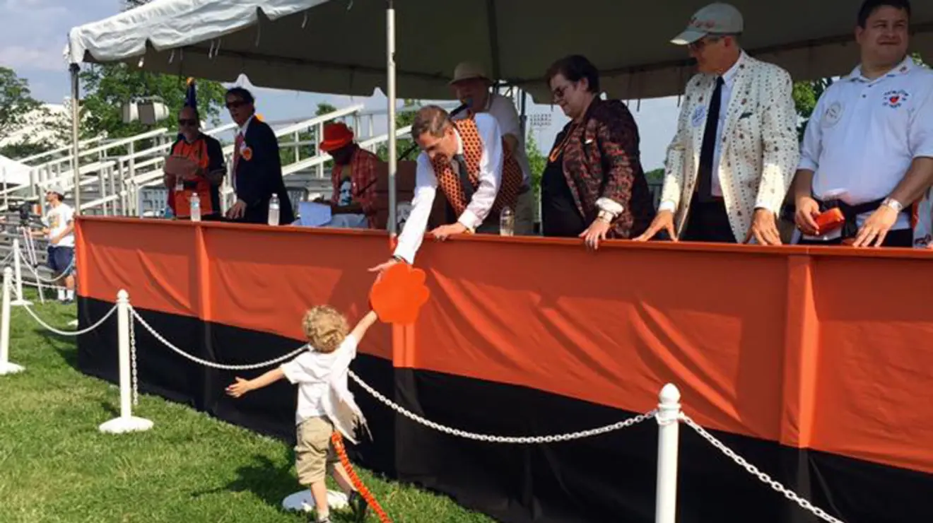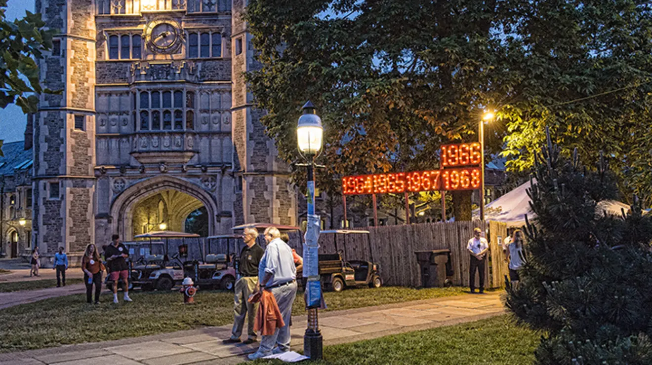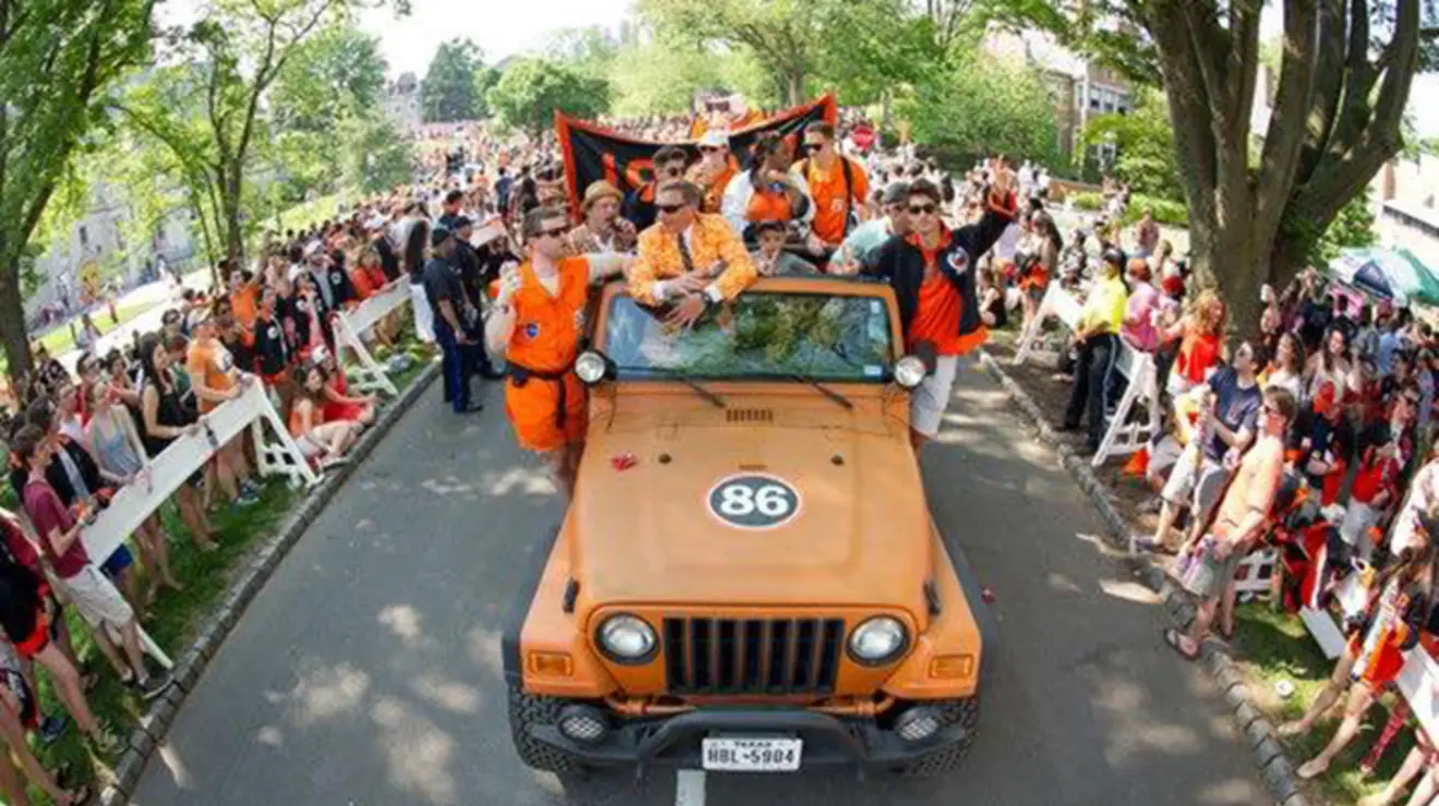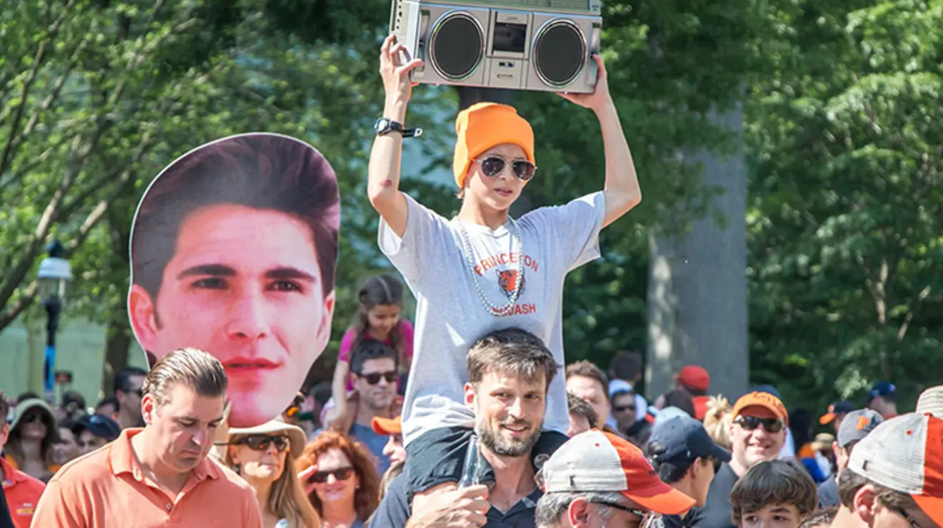“Preston Kite, k'01 (future class of 2034?) continued his 'high-fiving' duties to the review stand and got a high five from President Eisgruber himself.”