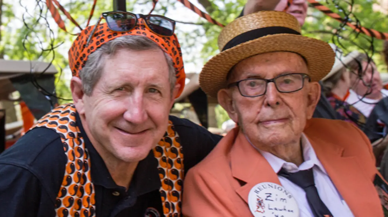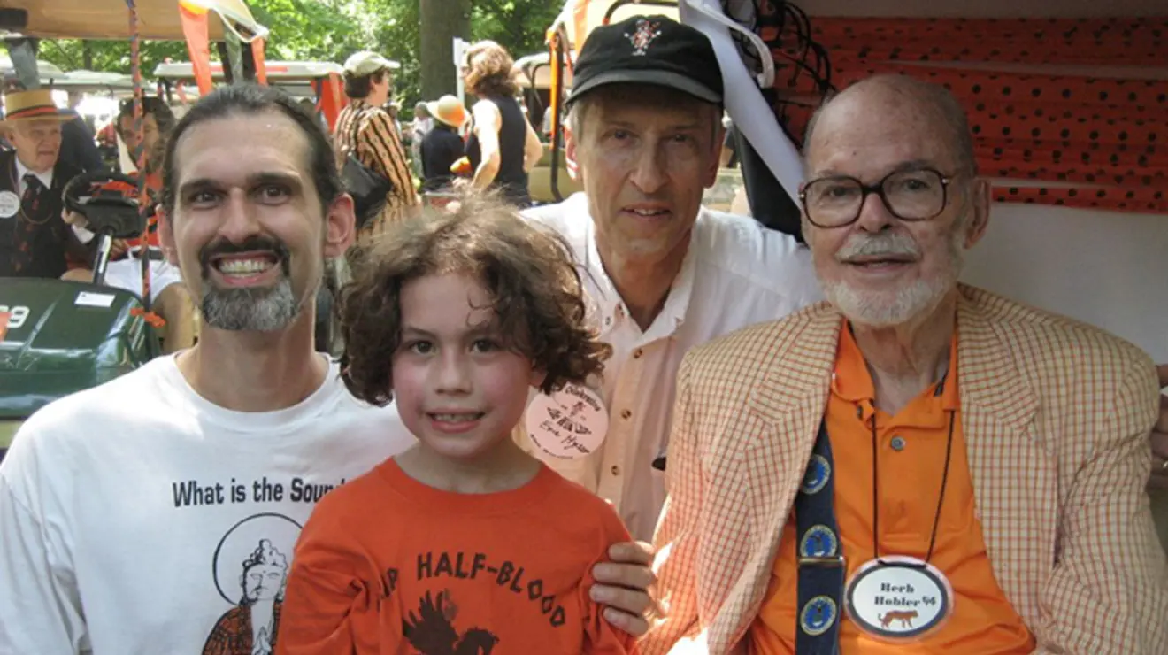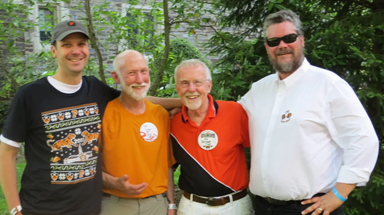 From left, Christopher Fitz Randolph Hyson ‘99; Nathaniel Fitz Randolph Hyson (son of Christopher); Eric Hyson ’71 (son-in-law of Herbert Hobler ’44); and Herbert Hobler ’44, celebrating his 70th consecutive reunion.