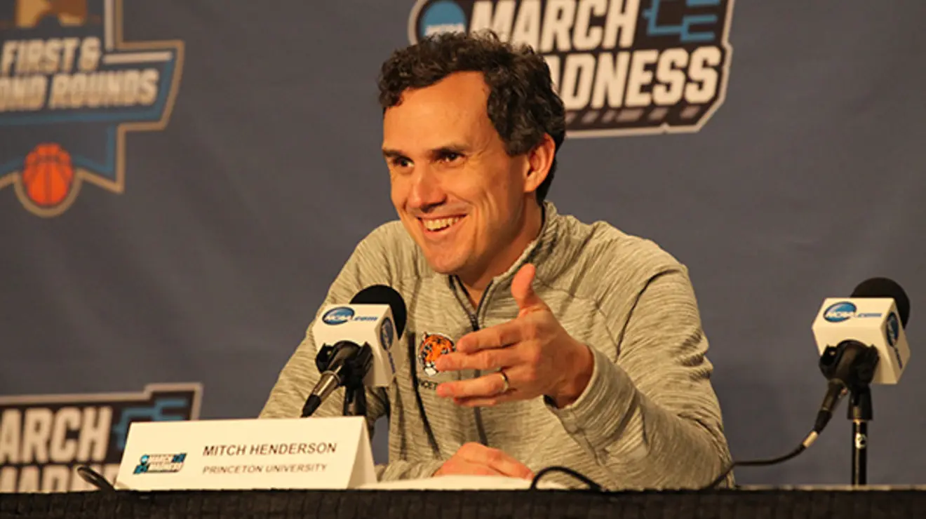 Head coach Mitch Henderson ’98 recalls step one of Princeton’s 1996 upset win over UCLA: On the opening tap, all five Tigers ran back on defense.