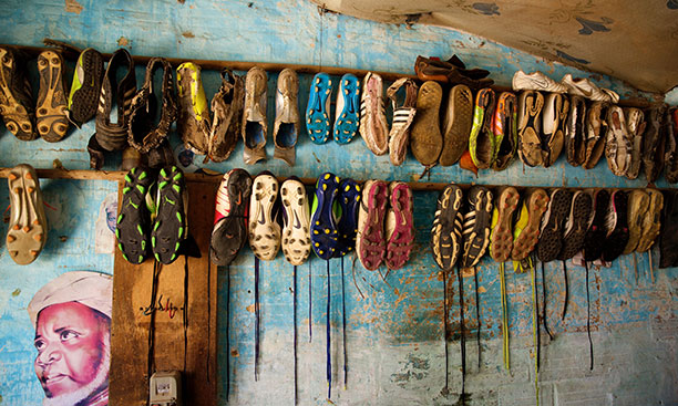 BT: And on your website for the book, one of my favorite pictures is of a shop in Senegal, where they refurbish soccer cleats, and some of these cleats have been worn out to the point that you can barely tell it was ever a shoe. I mean it’s obviously — the amount of play, and the amount of just hard work that these kids are putting in is obvious.