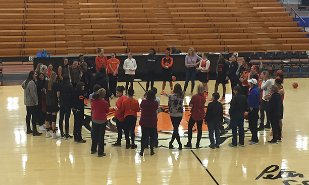 BT: And with that, we turned off the mics and went up to Jadwin’s main floor, where more than 30 alumni joined the current team in at center court — Princeton women spanning nearly 50 years, all in one circle.